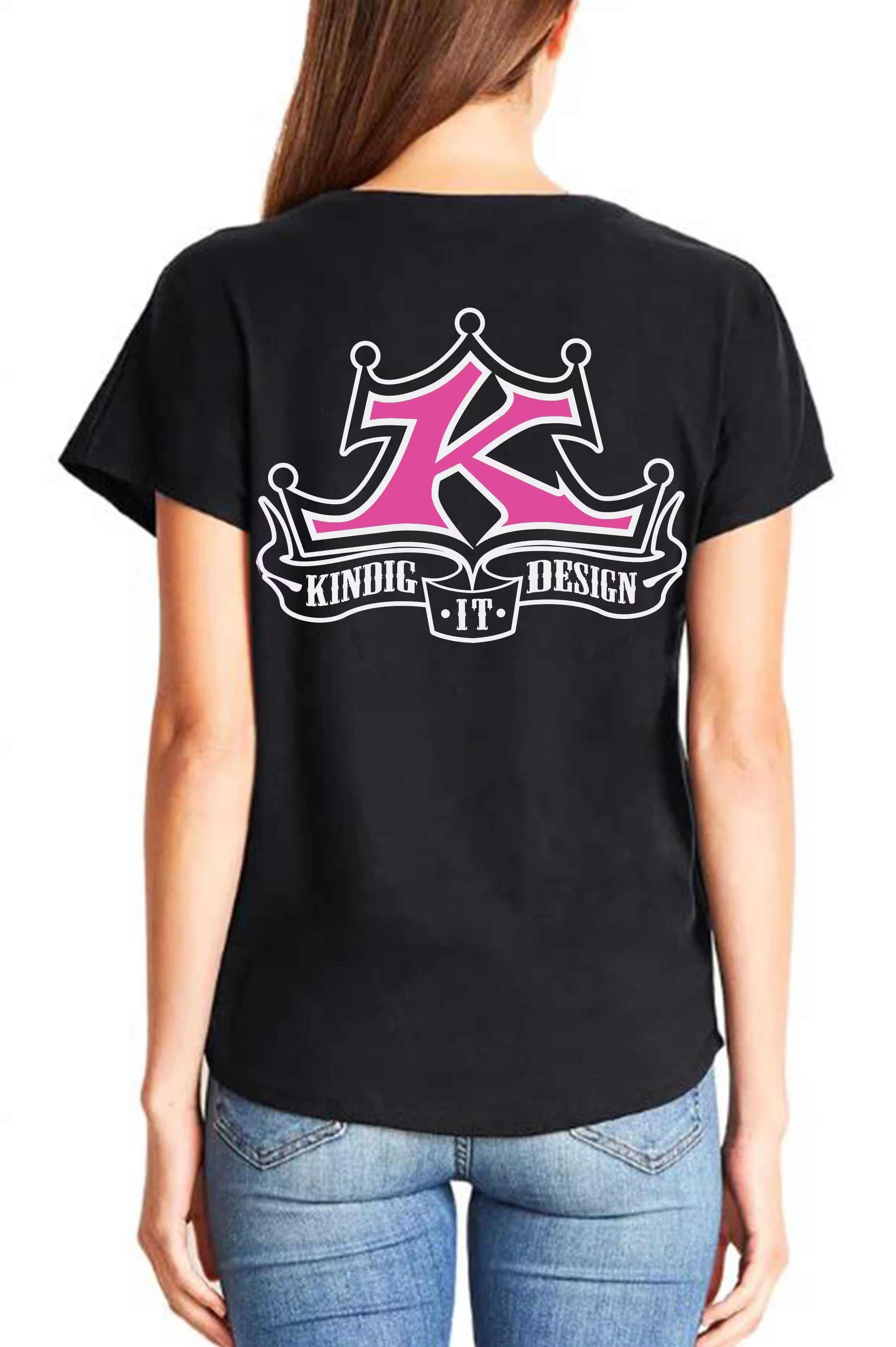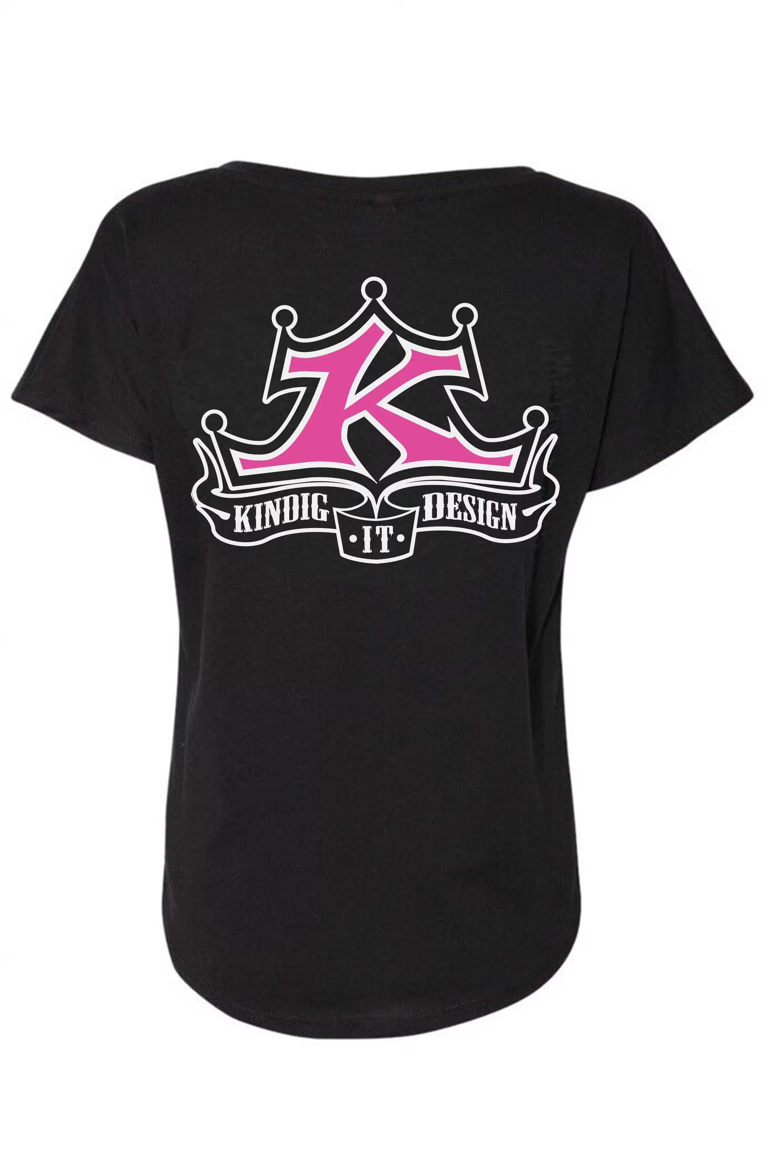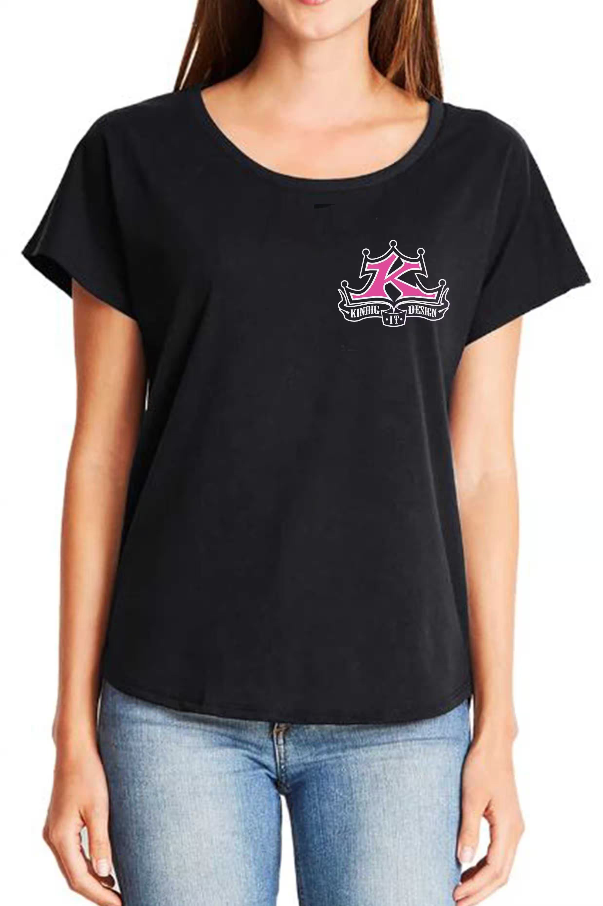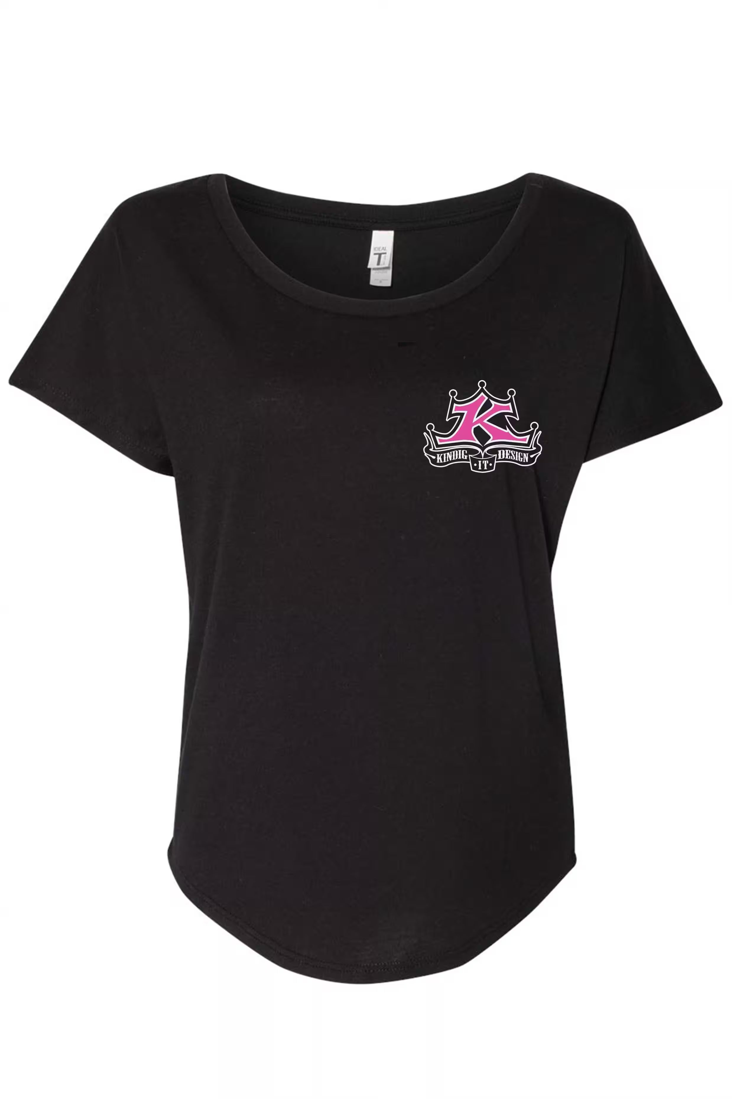 Relaxed Fit Scoop Neck T-Shirt! The print colors are pink and white.