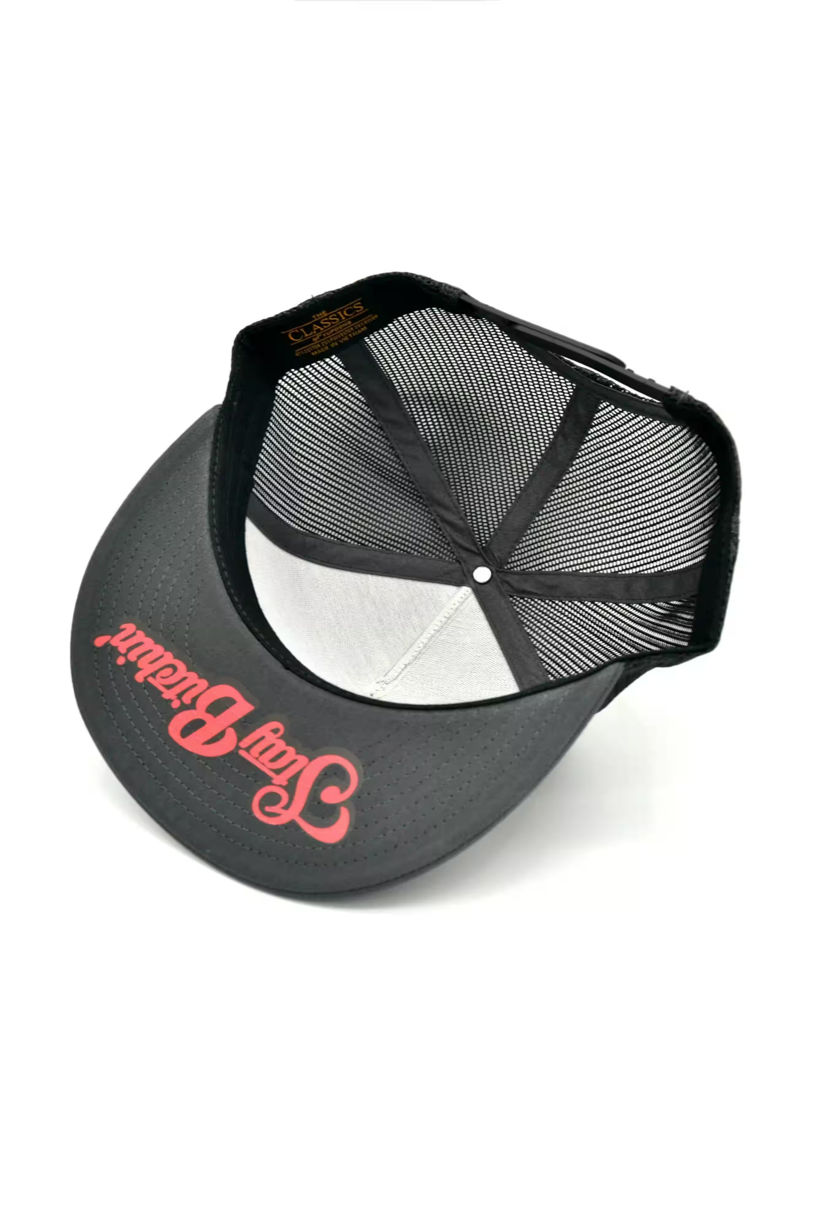 Locally screen-printed with a black and red Kindig-it Logo, and "Stay Bitchin" under the visor, featuring a Snapback Closure, this Bitchin' hat is gray in color with a matching under visor.