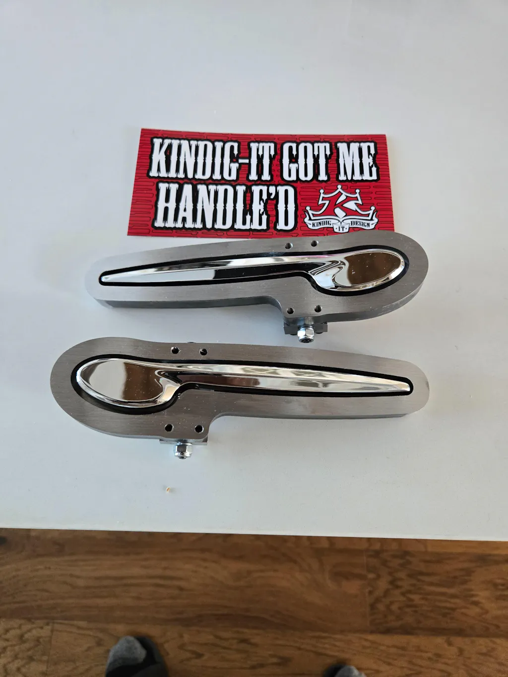 The handles can be modified to fit any door handle and adds a phenomenal look to your ride while delivering simple form and function. The handles are handcrafted in-house at Kindig-It Design and can be ordered in two different finishes. The custom finish options are paintable bare metal or polished chrome. Certain vehicles may need extra parts so please list the Year, Make, Model in the notes of the order.