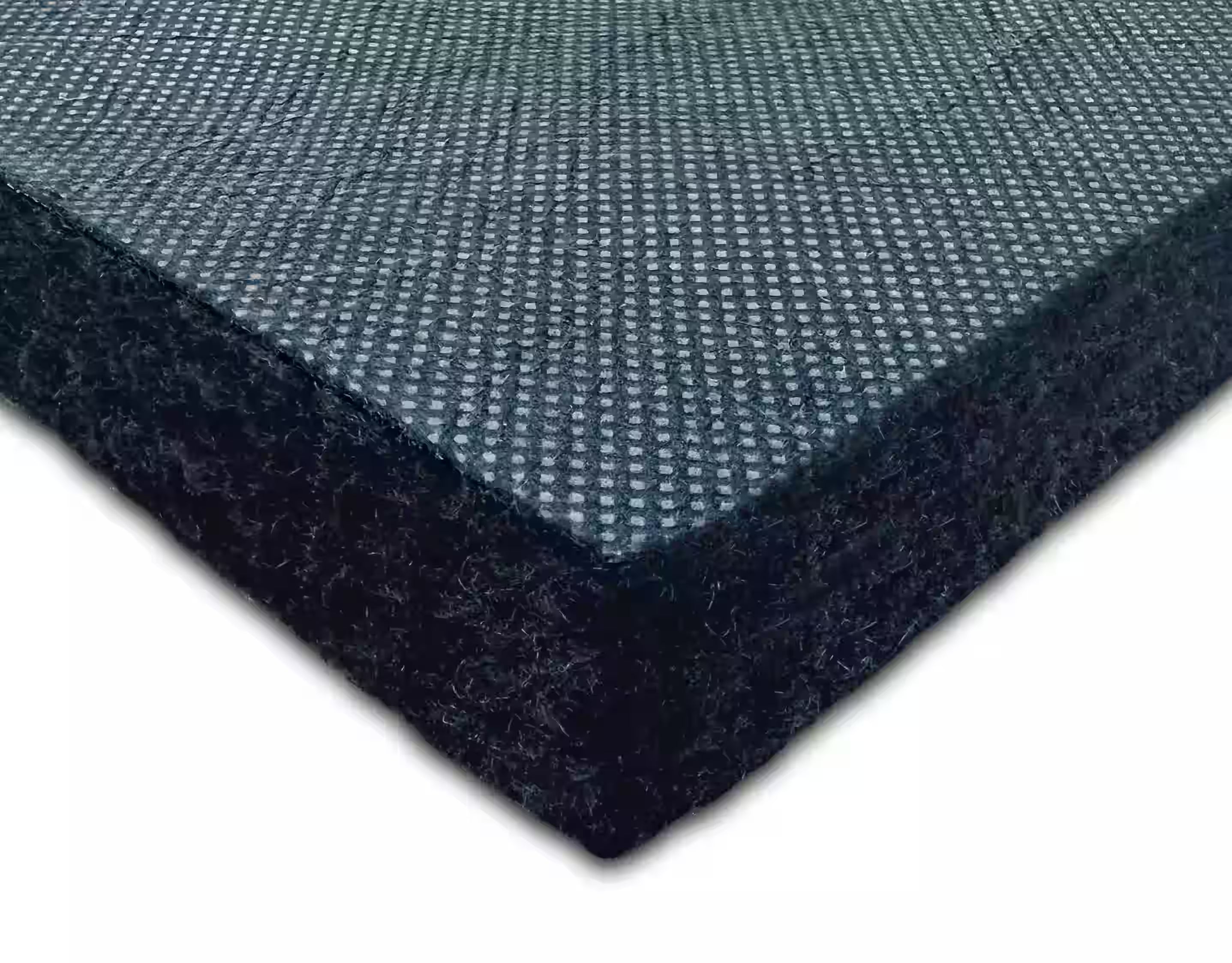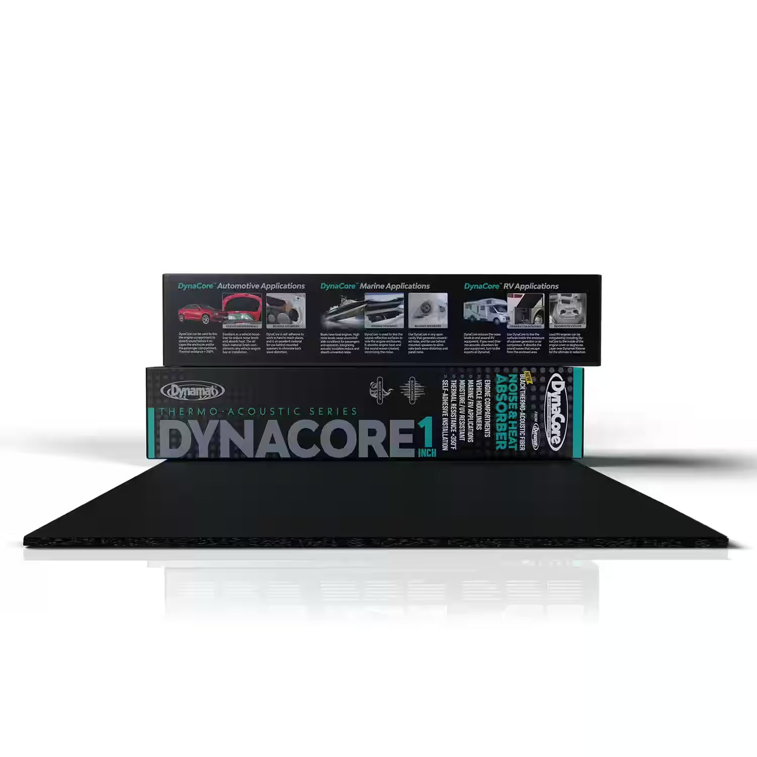 DynaCore a new, modern noise and heat absober with a black fiber core. It offers the unique structure needed to dissipate sound waves and absorb heat. In addition to its excellent sound absorption properties, it is lightweight, flexible, compressible, and thermally insulating. The black Fiber-based core offers excellent low–frequency absorption properties, thermal resistance up to 350° F, and compliance with UL94, MVSS 302, UL HF1, UL HBF standards. Available in 1/2" and 1" thickness and measures 32" x 54" for a total coverage of 12 sq.ft.