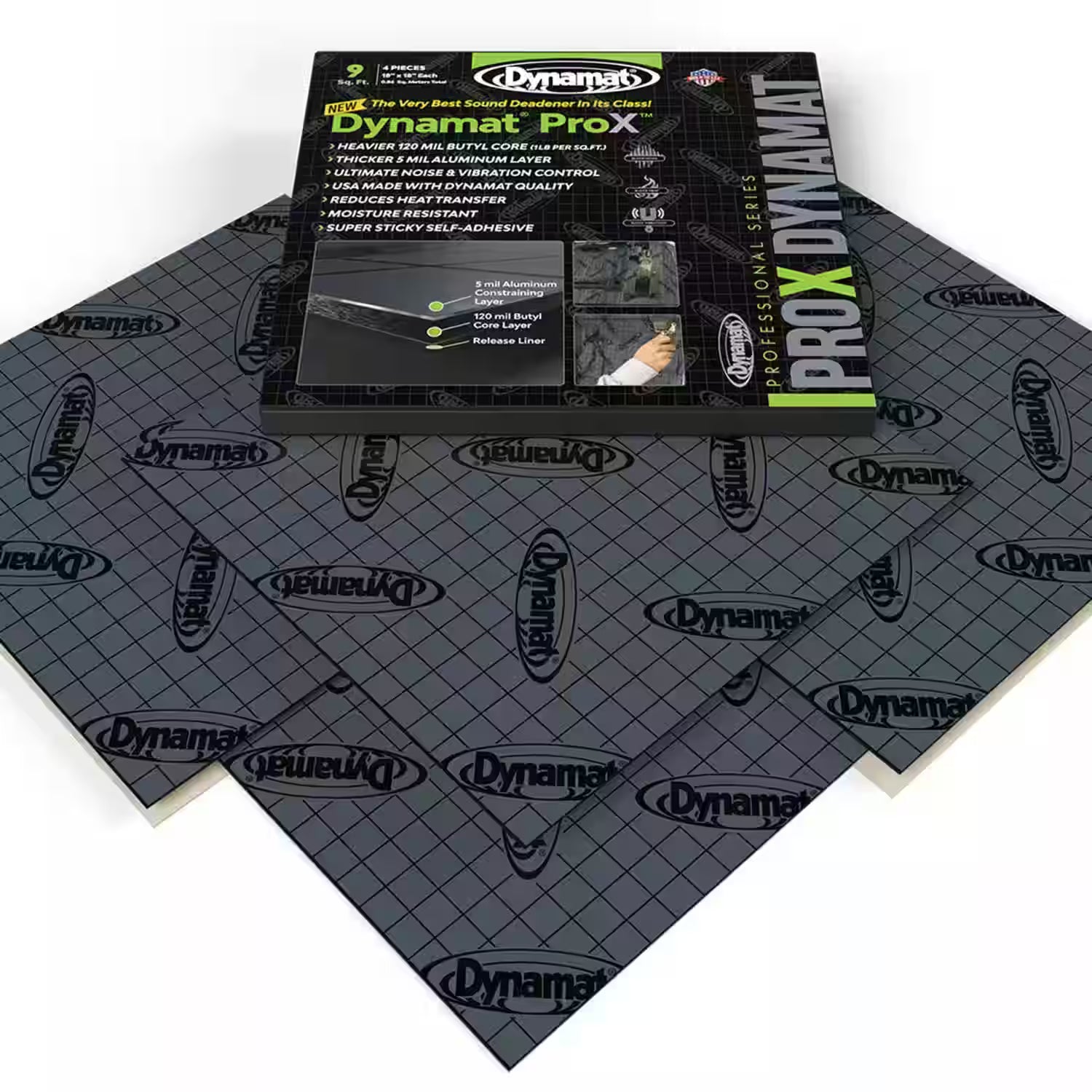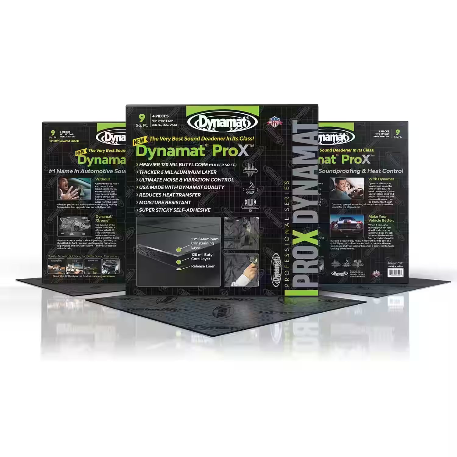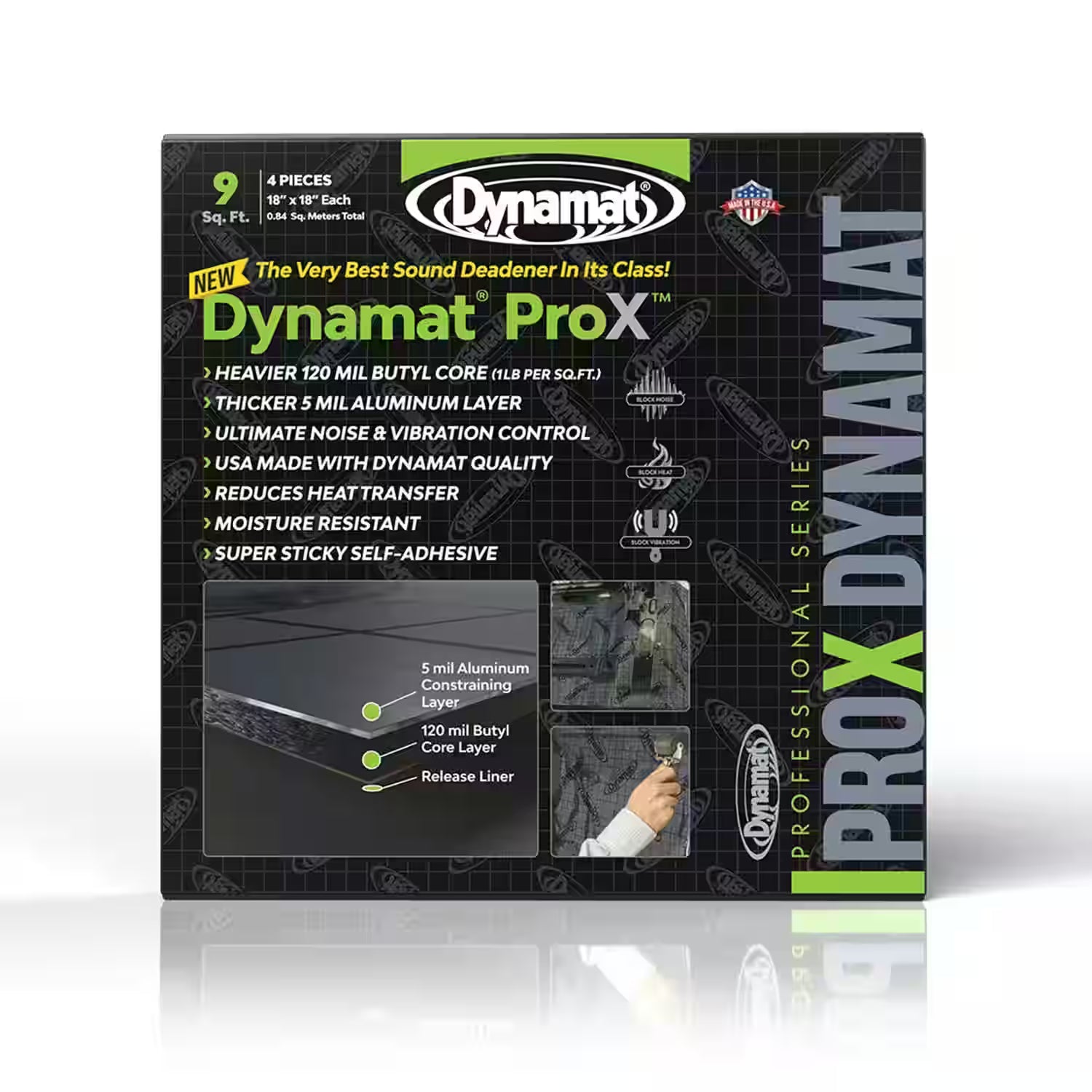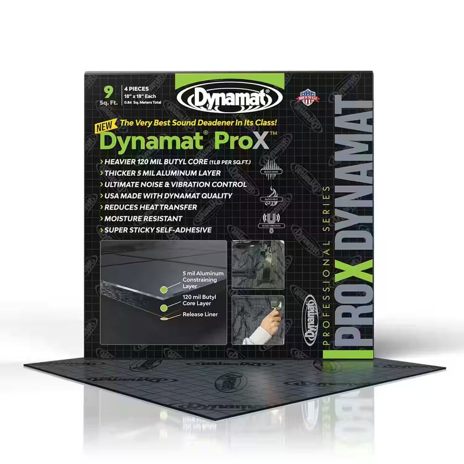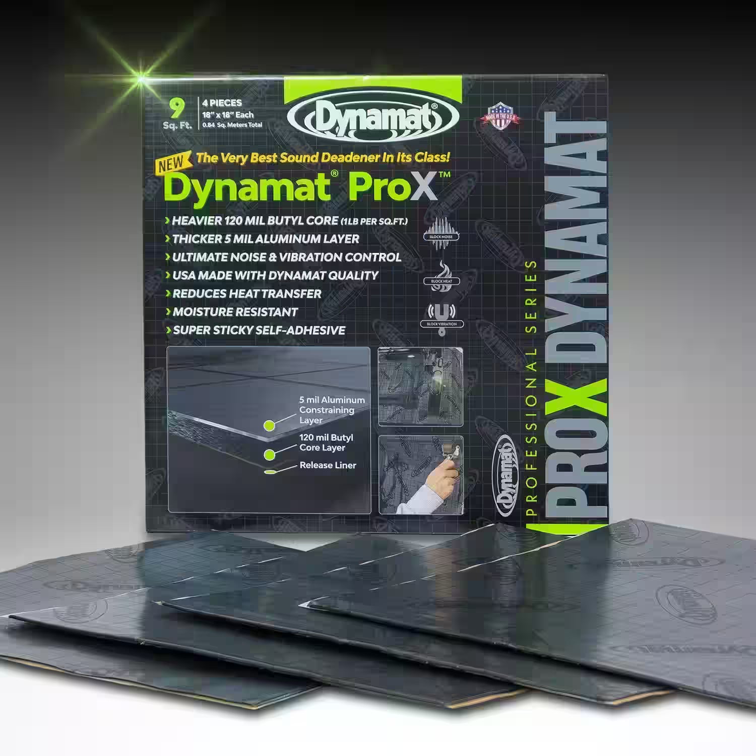With the same proprietary butyl formula as our flagship Dynamat® Xtreme® damping material, the all new Dynamat® ProX™ is twice as heavy, with an even thicker 5mil aluminum top layer. Independent, third party testing has shown it out performing all competition in multiple benchmarks. Problem noise? Dynamat® ProX™.