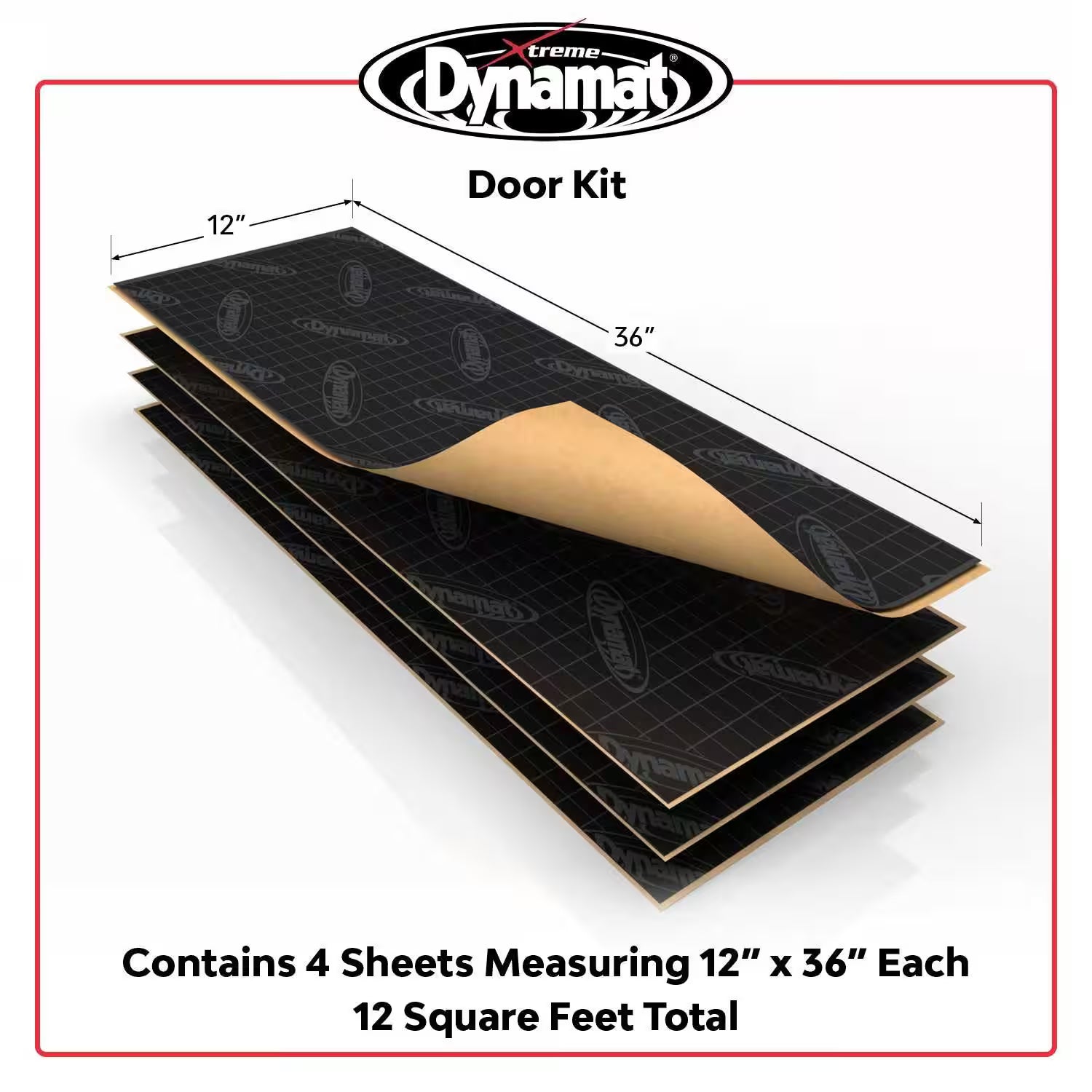 Dynamat Xtreme quiets annoying road noise, improves a speaker's dynamic range, and makes for a more comfortable driving experience. You can quiet down the noise, and get better sound. Kit contains four 12" x 36" (305mm x 914mm) pieces of Dynamat Xtreme to reduce road noise so you Hear More Music!™. Kit includes enough material for two standard size doors. For proper installation, use one of our Dynaroller tools.