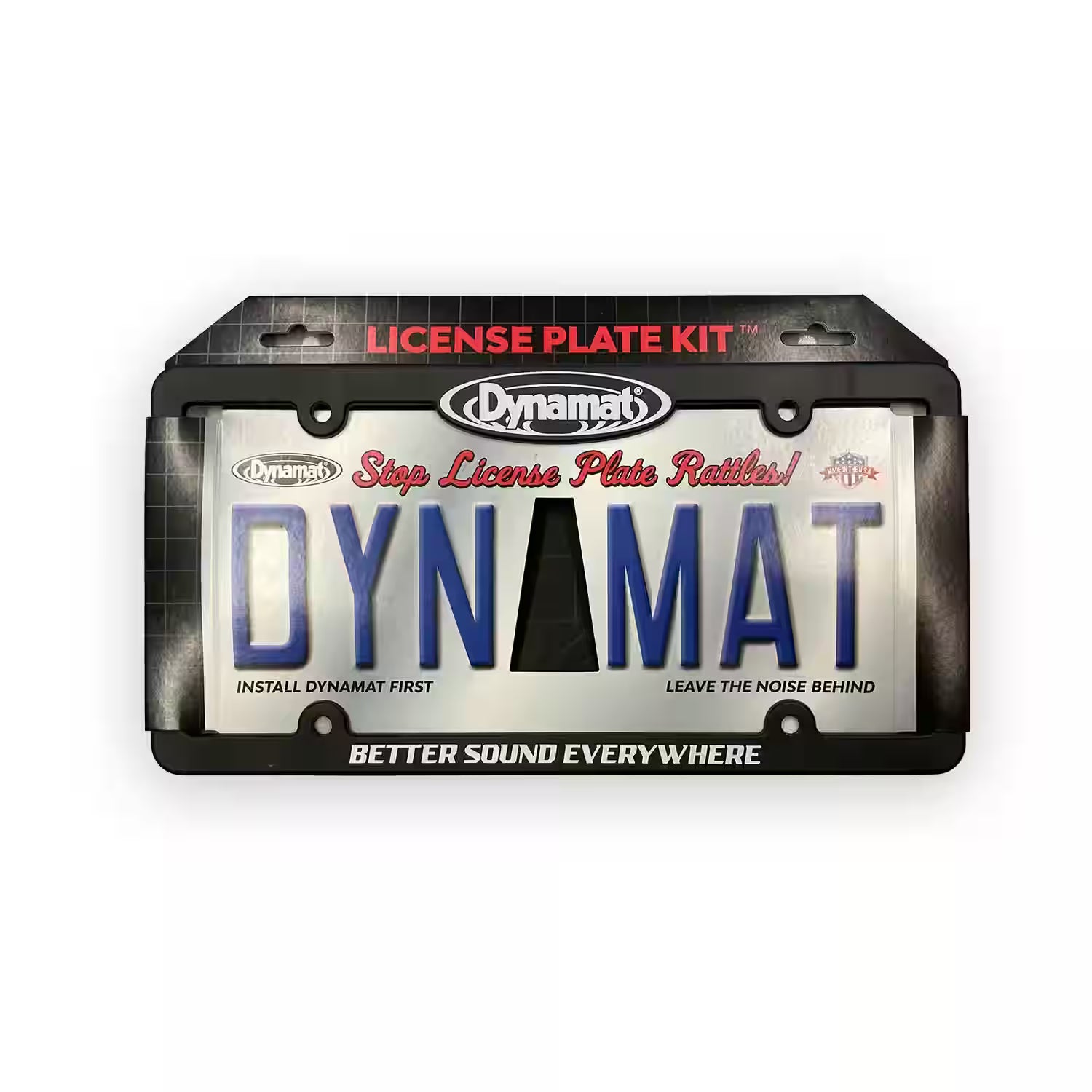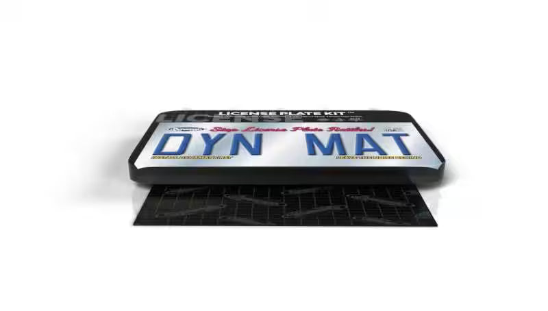 Application: Kit contains one 4" x 10" piece of Dynamat Xtreme to be used on the back of the license plate plus four foam strips for attaching the included decorative frame. Use to quiet down noise license plate rattle.