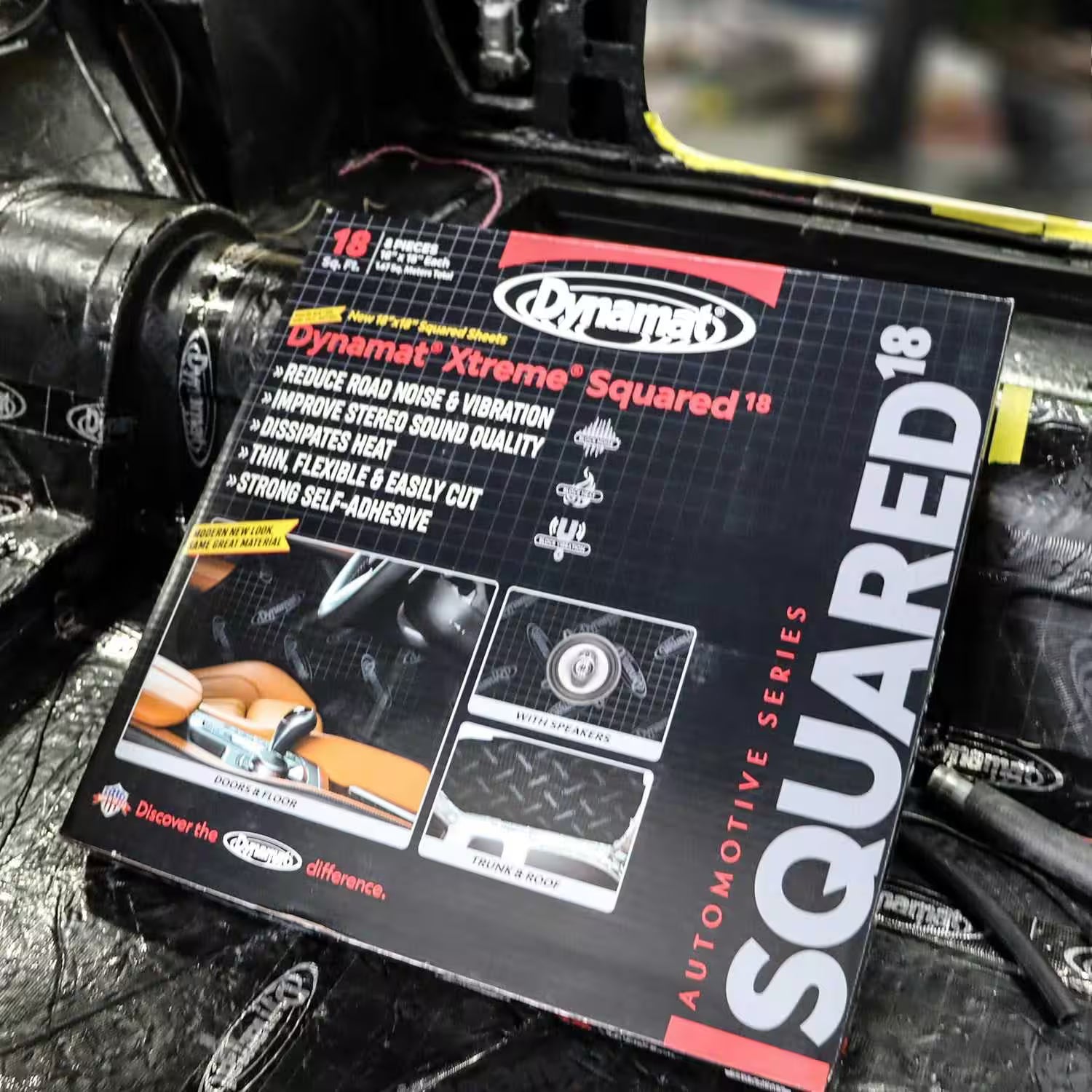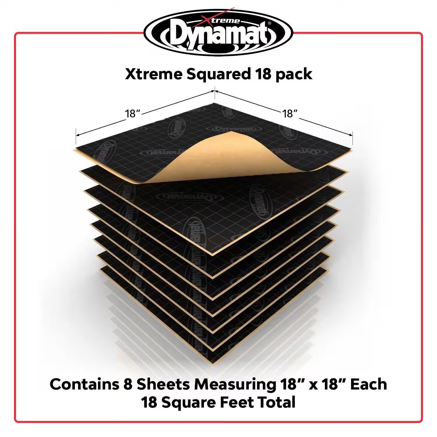 Dynamat Xtreme Squared 18 Pack in a new 18″ size with a 1-inch cutting grid. Same great Dynamat material with a modern, new look. New 18″ square pieces for easy installation.