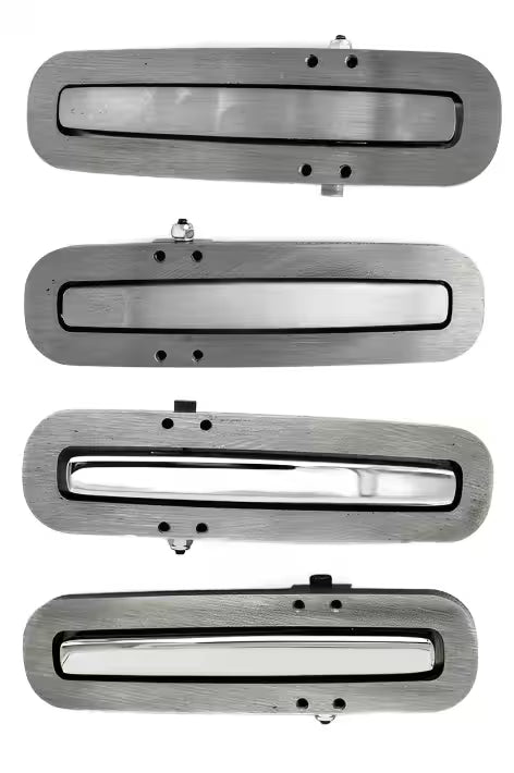 The handles can be modified to fit any door handle and adds a phenomenal look to your ride while delivering simple form and function. The handles are handcrafted in-house at Kindig-It Design and can be ordered in two different finishes. The custom finish options are paintable bare metal or polished chrome. Certain vehicles may need extra parts so please list the Year, Make, Model in the notes of the order.